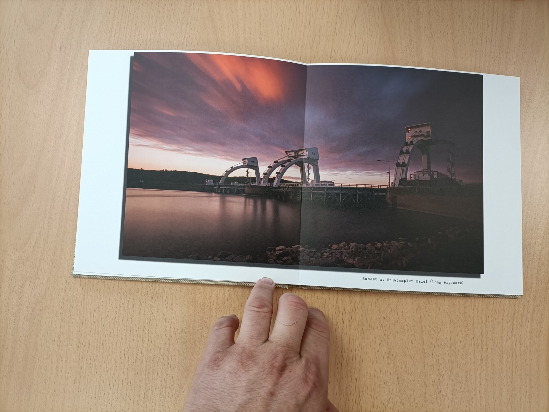 Er zijn een paar maten om uit te kiezen. Voor de hand ligt het voor mij om een groot formaat te kiezen, mijn foto's moeten 'smoelen' en dat gaat niet op een postzegel formaat. Toch heb ik gekozen voor formaat 21 bij 21 centimeter. Als ik op dit formaat één foto over twee pagina's te spreid zou dat dan werken? Saal geeft aan dat het boek platliggend gedrukt wordt dus ik was benieuwd hoe dit zou worden. En dat viel geen seconde tegen. Foto's worden weergegeven zonder enige vervorming of beeldverlies en dat ziet er heel mooi uit.